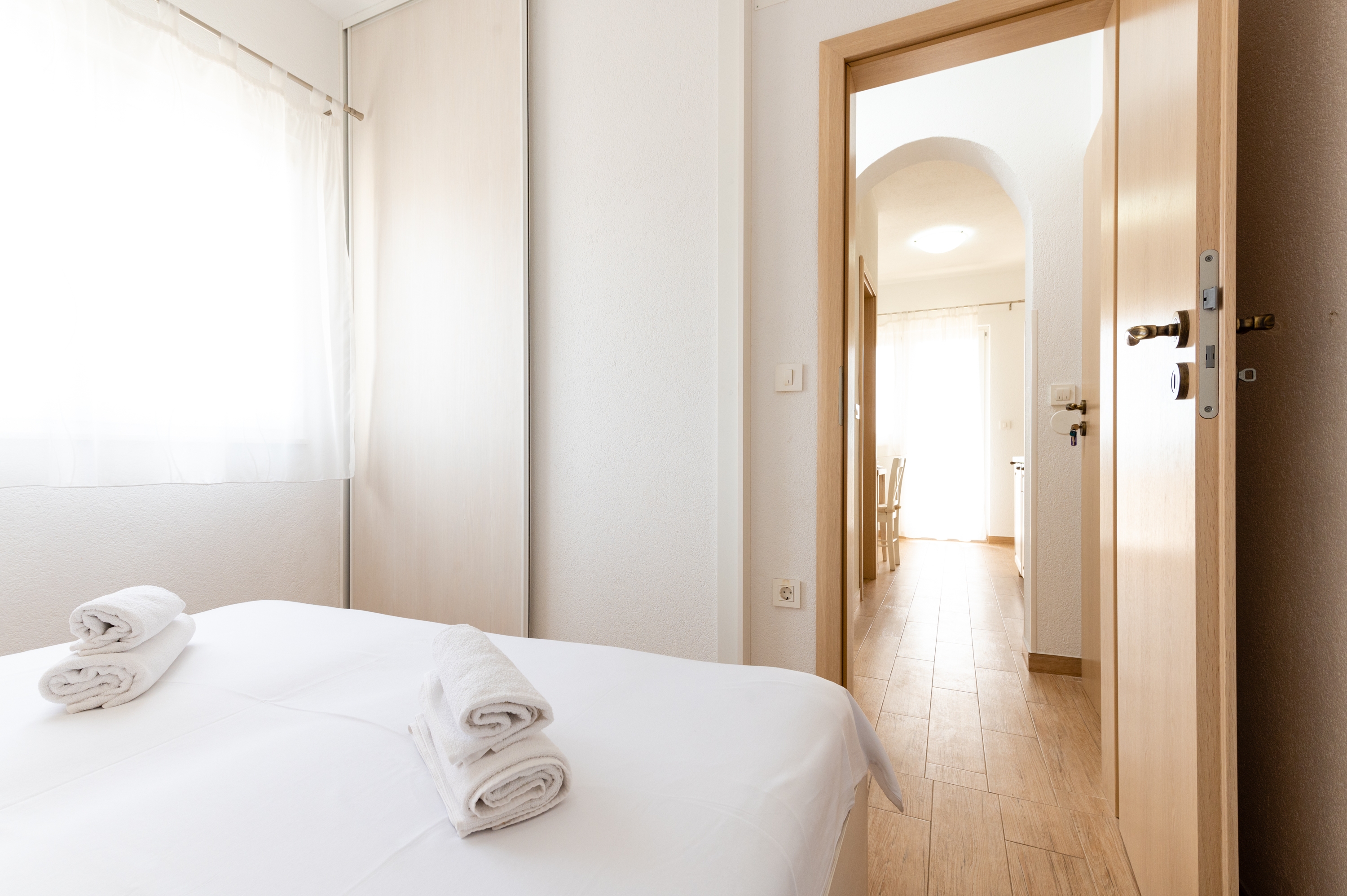 Apartment can accommodate 2 guests. Beds are situated in 1 sleeping rooms, within 27m2. Guests can use a private terrace to enjoy the warm summer evenings. The apartment offers the sea view. Food can be prepared using barbecue which is shared with other guests too. This accommodation unit welcomes pets at an additional charge. INCLUDED IN THE PRICE: tourist tax, final cleaning, air-conditioning, parking, internet, baby cot, hairdryer, 1 bed for children (included in the price). OBLIGATORY ADDITIONAL COSTS: short stay fee (surcharge depending on a number of booked nights: 30% - 1, 20% - 2, 10% - 3). OPTIONAL ADDITIONAL COSTS: laundry (€5.00 washing), pets (€5.00 per night). The availability of additional services for your chosen dates of stay, as well as their prices (if none are listed) must be checked ahead of time. Any additional services not shown in the price calculation are payable directly to the property owner and only if used by the visitor.